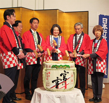 若林会長とご来賓の方々による鏡開きで祝宴が開宴され、三重県議会議長 服部富男様が乾杯の音頭を取られました。