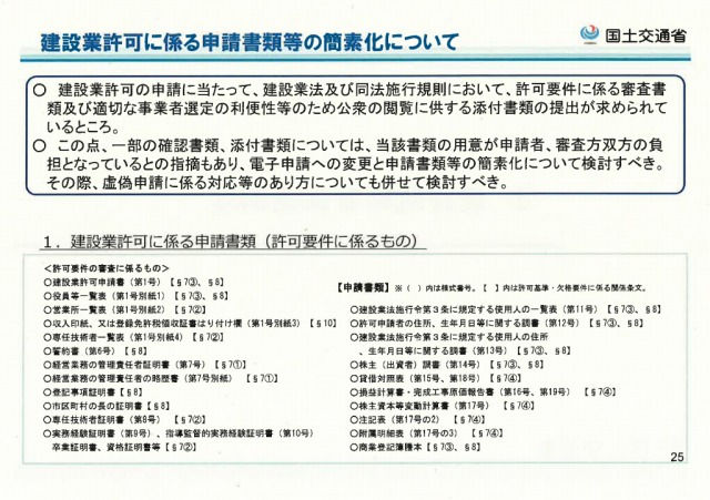 また、申請書類等の簡素化については、一部の確認書類・添付書類の用意が申請者・審査行政庁双方の負担となっている指摘もあり、電子申請への変更と申請書類の簡素化について、虚偽申請への対応のあり方と併せて検討すべきとされた。