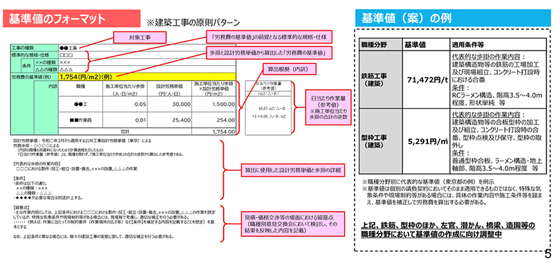 職種分野別の労務費の基準値が今後国土交通省より公開される予定で、今月12日の施行段階では13職種について基準値が公開される。