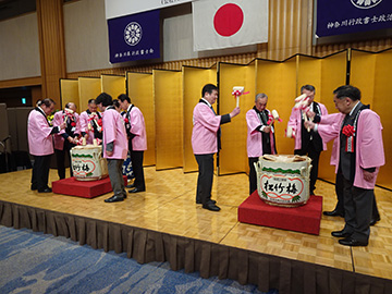 役員・来賓各氏による鏡開きに続き、神奈川県行政書士会 水野晴夫名誉会長のご発声により乾杯が行われ開宴となりました。