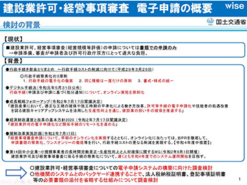今回の研修会では、「建設業許可・経営事項審査電子申請の概要と財務諸表作成の留意点」と題しまして、第一部では、令和5年1月より開始された建設業許可・経営事項審査の電子申請について概要や申請の流れを解説させていただきました。