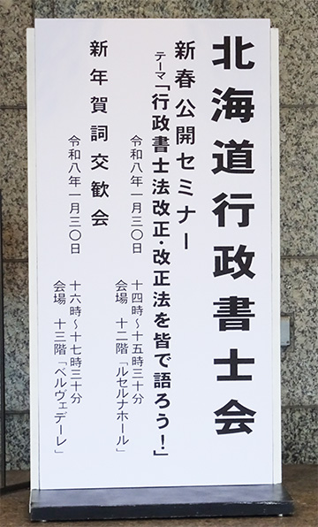 北海道行政書士会様、北海道行政書士政治連盟様、一般社団法人北海道成年後見支援センター様、この度は新年賀詞交歓会のご開催誠におめでとうございました。