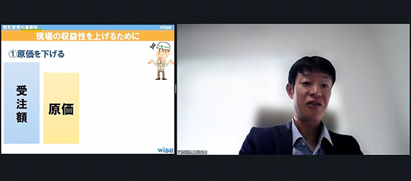 第2部では「工程マネジメントで生産性向上と利益を創出する」と題して、➀工程マネジメントの向上が必要な時代背景、➁工程とコストとマネジメントの相関関係、➂当初計画工程の工夫が利益を決める、➃工程計画を高い精度で実行に繋げる、➄リソースコントロールが高利益を生み出すの各項目について解説させていただきました。