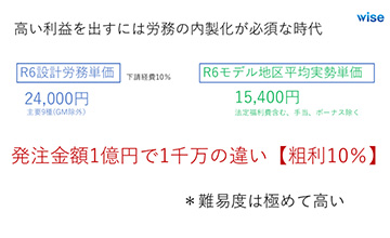 第2部では「工程マネジメントで生産性向上と利益を創出する」と題して、➀工程マネジメントの向上が必要な時代背景、➁工程とコストとマネジメントの相関関係、➂当初計画工程の工夫が利益を決める、➃工程計画を高い精度で実行に繋げる、➄リソースコントロールが高利益を生み出すの各項目について解説させていただきました。
