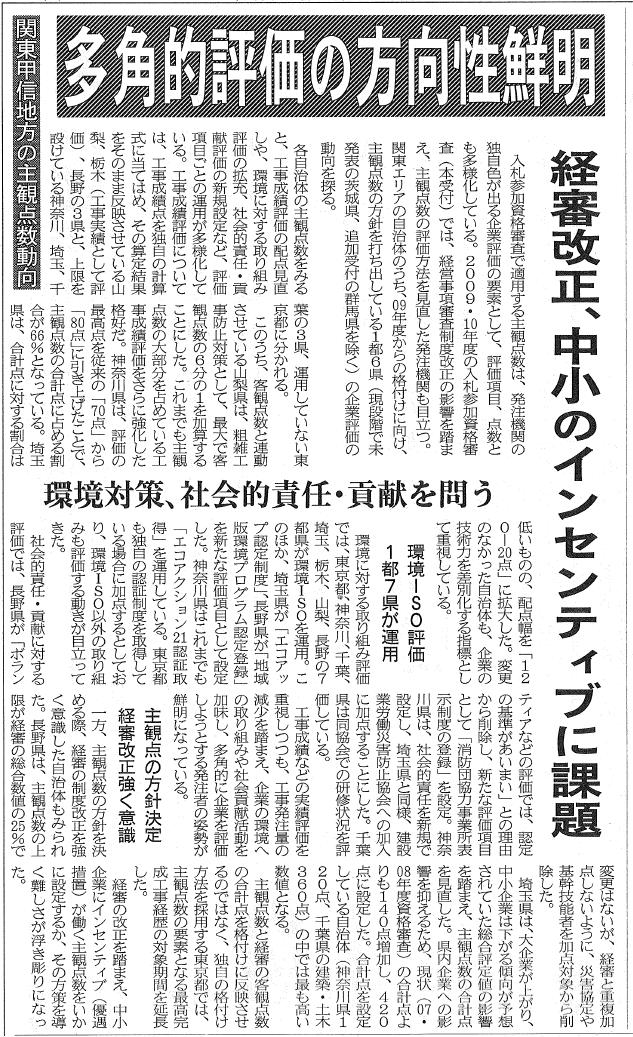 2009/1/5 多角的評価の方向性鮮明/経審改正、中小のインセンティブに課題