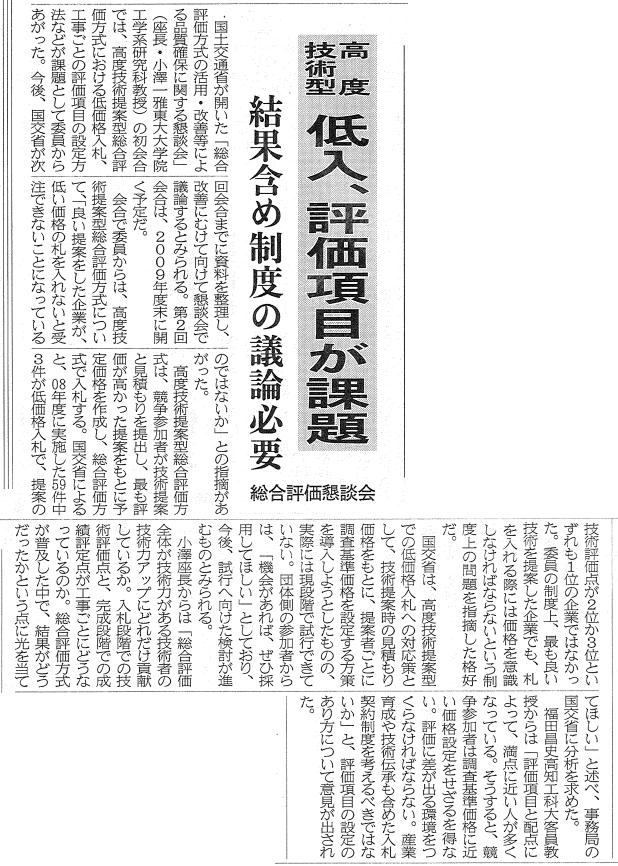 2009/11/11 高度提案型の低入、評価項目が課題/総合評価懇談会
