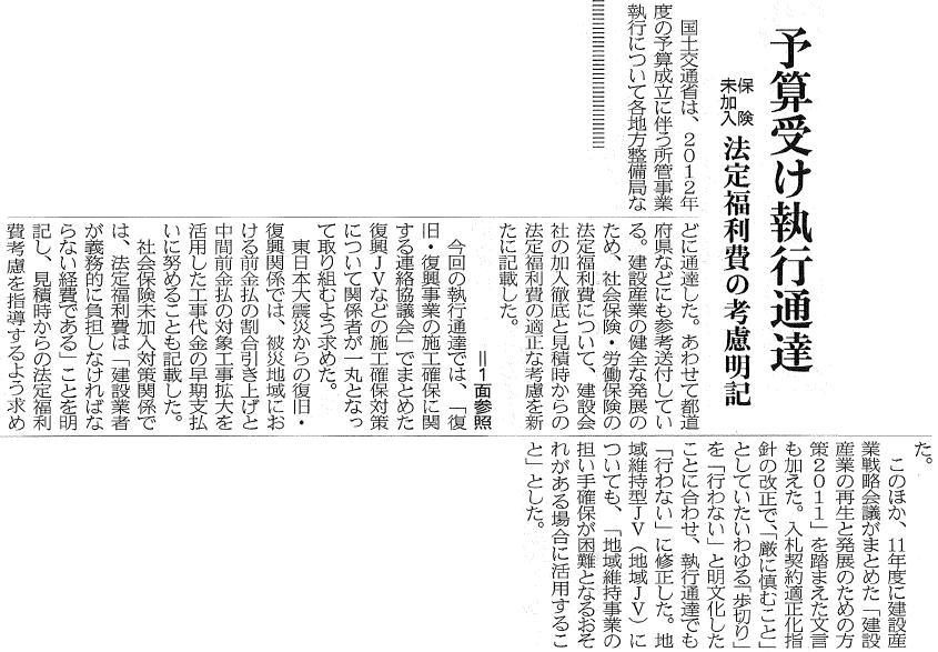 2012/04/09 予算受け執行通達/保険未加入、法定福利費の考慮明記