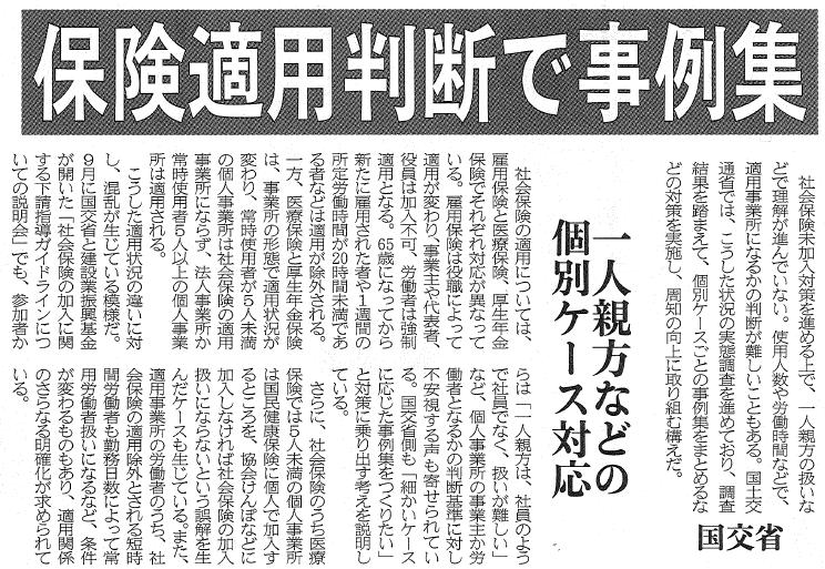 2012/10/03 保険適用判断で事例集/一人親方などの個別ケース対応/国交省