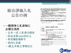 新業務の可能性について」と題し、総合評価方式入札制度の現状、業績を伸ばしている建設業者