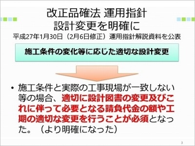 改正品確法運用指針により明確化された設計変更に対する基本的な考え方や、