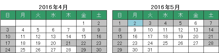 営業日カレンダー 2016年カレンダー (サイズ:44KB 掲載日:2016/04/01)