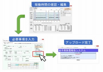 「タコグラフマネージャ 岩手県除雪報告システム連動版」は、岩手県道の除雪に携わる受託業者様向けに、タコグラフチャート紙の確認作業、及び稼働報告書・チャート紙貼付台紙の作成事務作業を削減するため、昨年度より導入されたシステムです。