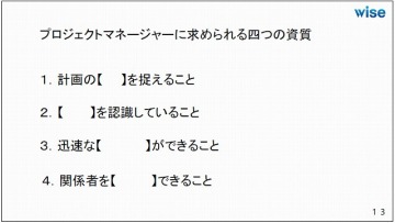 後半は、「現場代理人に必要な能力と伸ばし方」と題し、生産性を高めるための計画力や交渉の技術について、解説させていただきました。