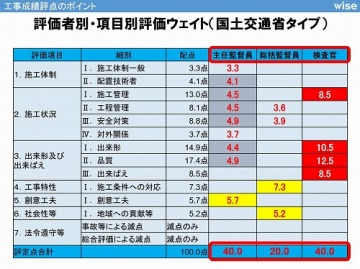 工事成績の逆算シミュレーションは、工事成績結果が届いた後で監督員・検査員等の評価者がどの評価項目でa,b,cどんな評価をつけたかを逆算し、その後の工事成績対策に活用する手法です。