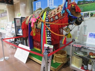 市庁舎に入ってすぐ右側には、あでやかな装束を身にまとった馬が「チャグチャグ馬コ」と展示されています。