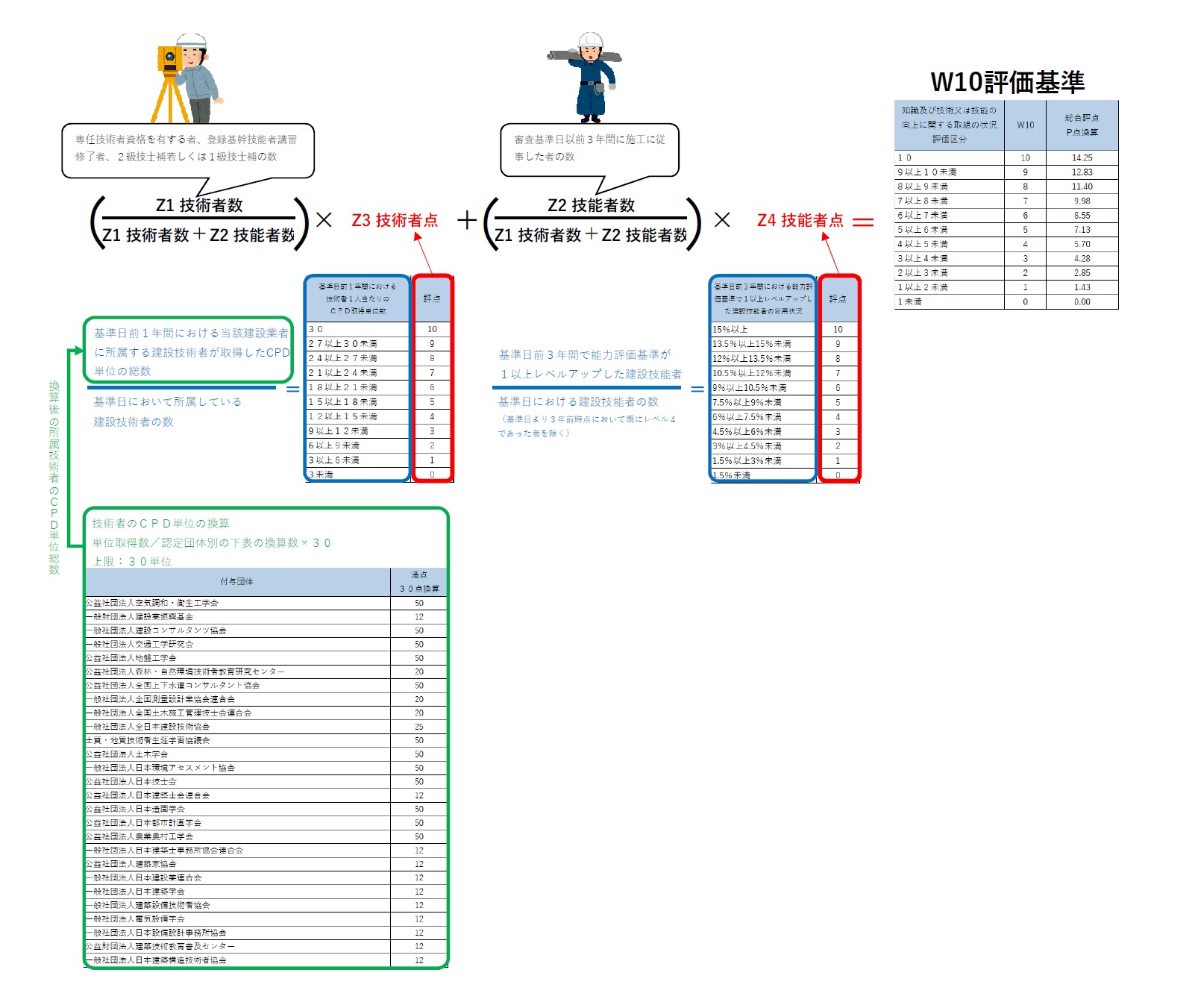 社会性新項目 W10 CPD・キャリアアップでP点換算で最大14.25点の加点。