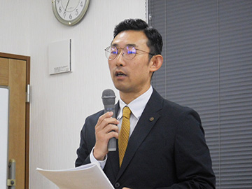 研修会の冒頭では福島県行政書士会 建設・環境委員会 委員長 根本重朋先生よりご挨拶がありました。