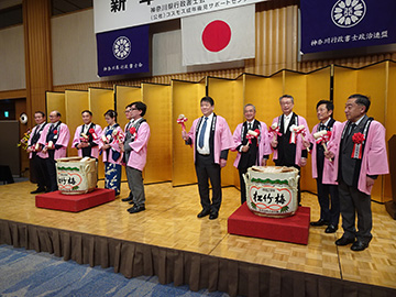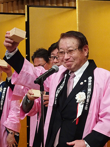 役員・来賓各氏による鏡開きに続き、神奈川県行政書士会 水野晴夫名誉会長のご発声により乾杯が行われ開宴となりました。