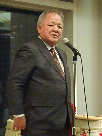 鏡開きに続き、日本行政書士政治連盟 常住豊会長のご発声により乾杯が行われました。多くの行政書士先生、来賓の参加により盛会となりました。