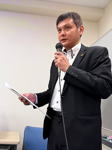 研修会開催にあたり、冒頭、福岡県行政書士会 建設環境部 副部長 賀門康志先生よりご挨拶があり、講師を紹介していただきました。