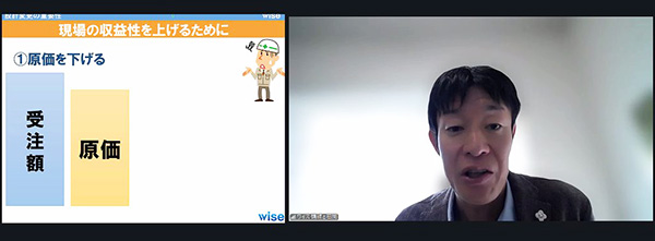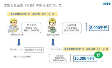 第2部では「工程マネジメントで生産性向上と利益を創出する」と題して、➀工程マネジメントの向上が必要な時代背景、➁工程とコストとマネジメントの相関関係、➂当初計画工程の工夫が利益を決める、➃工程計画を高い精度で実行に繋げる、➄リソースコントロールが高利益を生み出すの各項目について解説させていただきました。