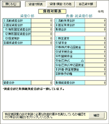 財務諸表の入力金額が一致しているか確認画面を表示します。 財務諸表入力時、結果通知書表示時に確認ができます。 資産合計と負債資本合計が一致しているか、当期利益が一致しているか一目でわかり、入力金額の確認が素早く行えます。 |